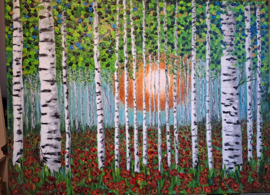 Uniek handgeschilderde Fantasie Bos van Zilver Berken