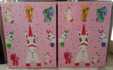 Uniek door PeeBee handgeschilderd tweeluik van Eenhoorns