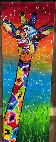 Kleurrijk, speels en expressief “portret” van een Giraffe dat direct sfeer geeft aan elke ruimte. Met felle tinten en verrassend lijnenspel is dit schilderij een echte blikvanger in je woonkamer, kantoor of hobbykamer.