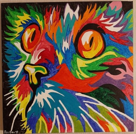 Kleurrijk, speels en expressief “portret” van een Poezen kop dat direct sfeer geeft aan elke ruimte. Met felle tinten en verrassend lijnenspel is dit schilderij een echte blikvanger in je woonkamer, kantoor of hobbykamer.