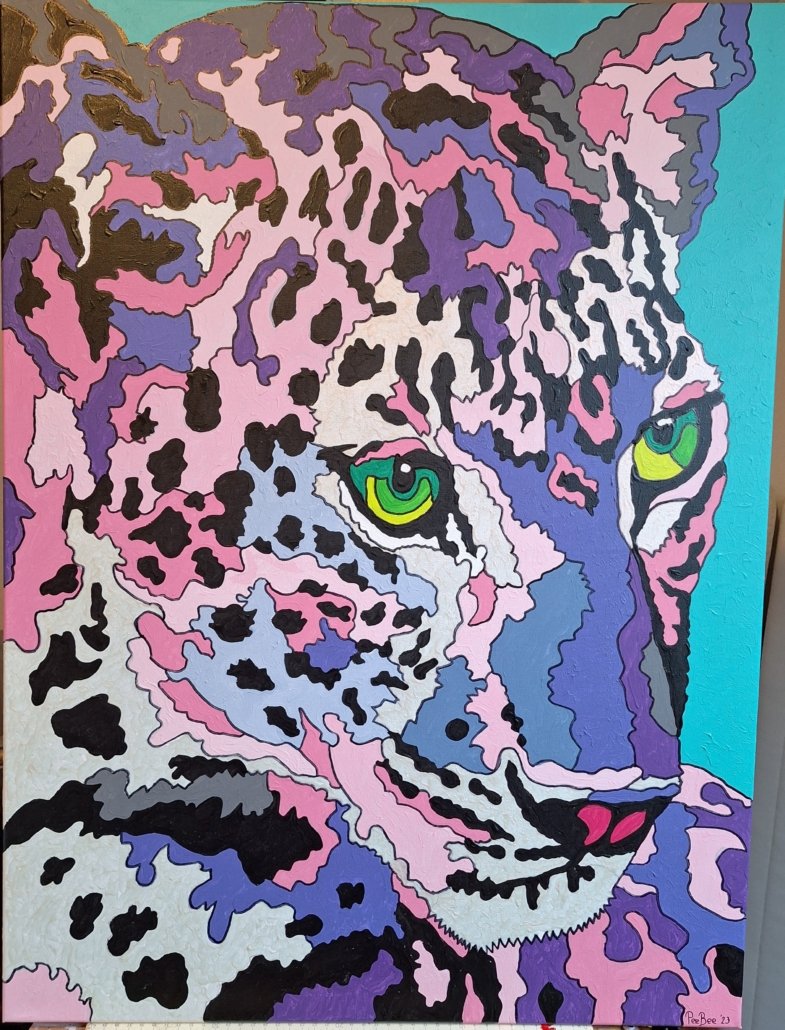 Kleurrijk, speels en expressief “portret” van een Sneeuwpanter dat direct sfeer geeft aan elke ruimte. Met felle tinten en verrassend lijnenspel is dit schilderij een echte blikvanger in je woonkamer, kantoor of hobbykamer.