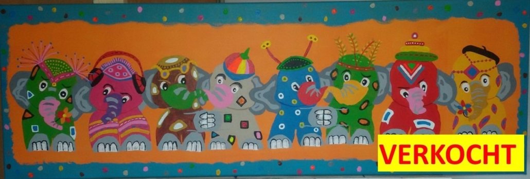 Uniek door PeeBee handgeschilderde Fantasie Vrolijke Olifantjes