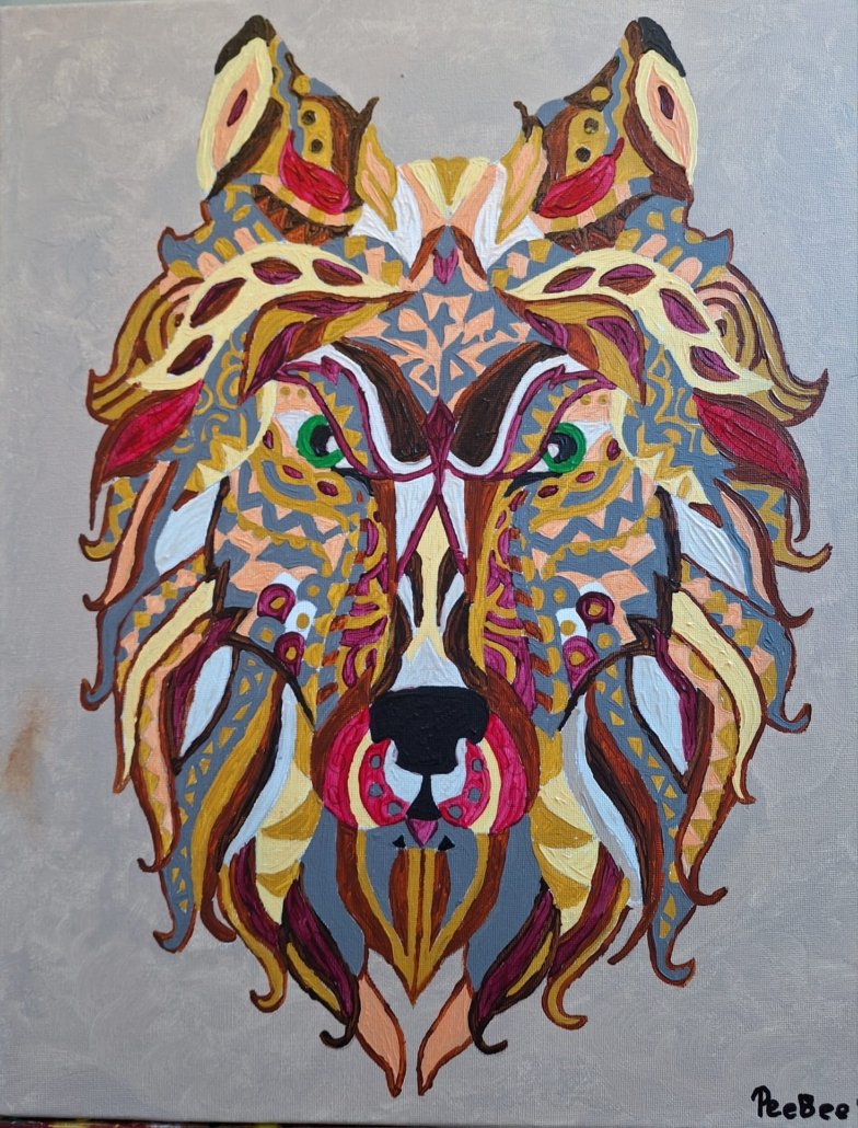Uniek door PeeBee handgeschilderde Fantasie Wolf